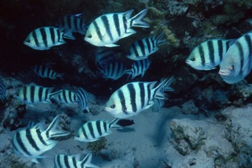 スズメダイ科のロクセンスズメダイは全長約15cmで、伊豆半島以南の西部太平洋、インド洋、紅海に分布している。雑食性で、プランクトンや藻類を食べる。オヤビッチャに似ているが、背中が黄色くないうえ、尾ビレの上下に黒帯があるので区別できる。生息場所…