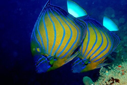 キンチャクダイ科サザナミヤッコ属のワヌケヤッコは全長約40cmになり、フィリピン以南の西部太平洋、東部インド洋に分布している。以前は日本にも分布しているとされていたが、誤りであることが判明した。体側にカーブする青い縞模様と目の後方に輪のような…